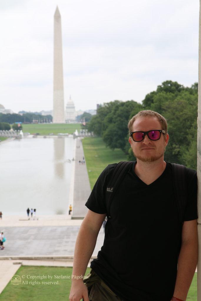 Gegen 9:30 Uhr waren dann auch alle anderen fertig, sodass wir auschecken konnten und mit den Autos in die Innenstadt gefahren sind. Von dort ging es zu Fuß erst einmal ins Lincoln Memorial. Danach entlang der Mall zur Gedenkstätte des 2. Weltkrieges und dann zum Washington Monument (der große Obelisk). Für alle die das Weiße Haus zu diesem Zeitpunkt noch nicht gesehen haben, ist Christian mit ihnen noch einmal ringsherum gelaufen. Wieder getroffen haben wir uns dann in der alten Post. Mittlerweile ist hier ein großes Trump Hotel angebunden. Den alten Turm der Post darf man allerdings trotzdem kostenlos besichtigen. Mit zwei Fahrstühlen fährt man in den 12 Stock. Von oben hat man dann einen schönen Blick über die gesamte Innenstadt.