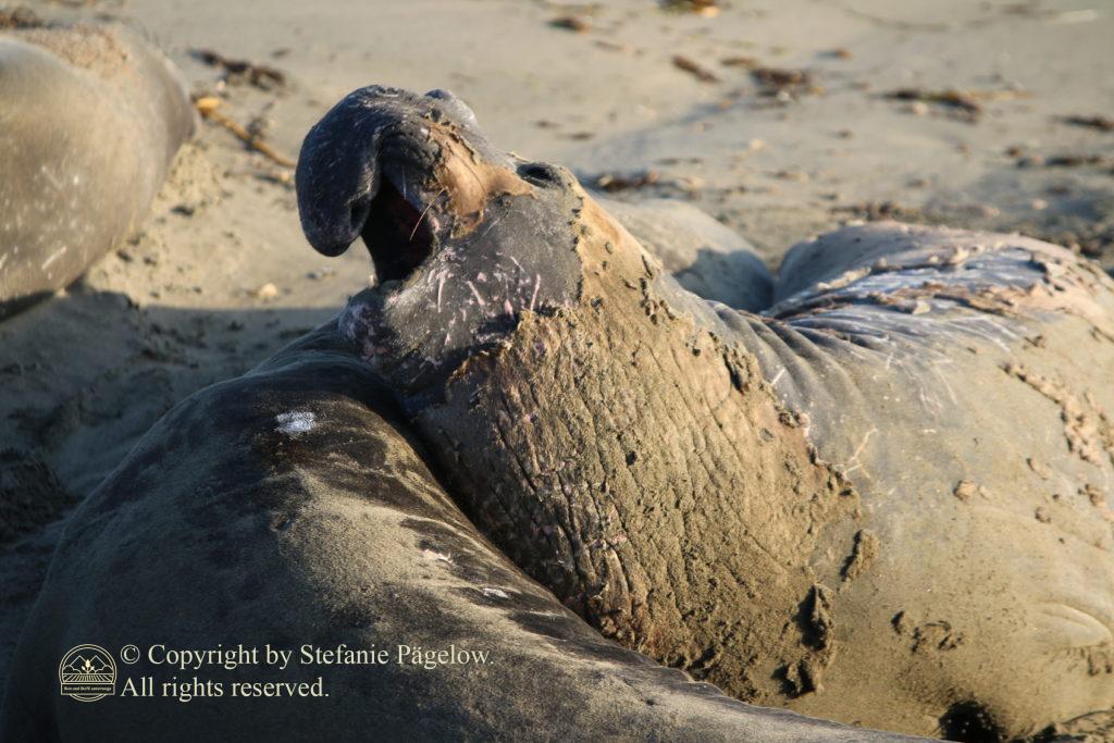 Einen dritten, unerwarteten Stopp haben wir dann kurz vor Cambria gemacht. Dort lagen direkt am Strand in mehreren Gruppen Seeelefanten. Das war ziemlich beeindruckend.