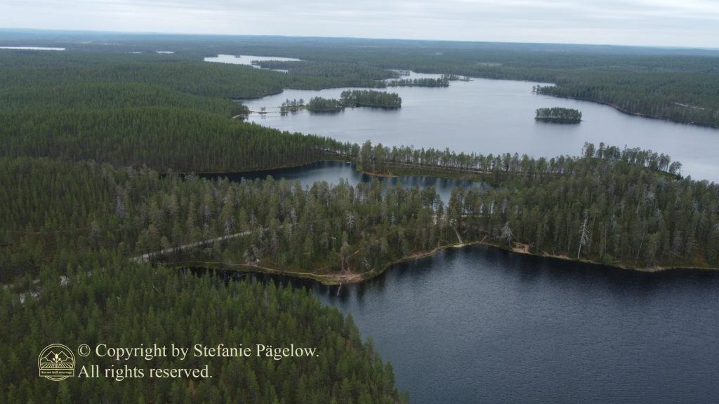 Nach einem ausgiebigen Frühstück mit allen, ging es auf nahe gelegenen Wanderweg. In etwa 4km ging es um den Huosilampi. Mit kleinen Pausen ging es meist direkt am See entlang. Manchmal über schöne Wurzelpfade und manchmal über Stege durch moorige Gefilde. Ein paar neue Accessoires finden wir auch.